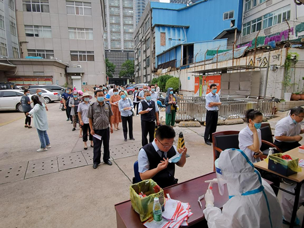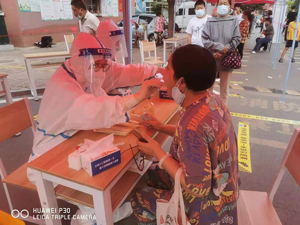 在醫(yī)院接到徐州市啟動(dòng)全員核酸檢測(cè)應(yīng)急演練的緊急通知后,健康管理中心迅速響應(yīng)醫(yī)院號(hào)召,選派3名護(hù)理人員參加應(yīng)急演練,奔赴社區(qū)指定核酸采集點(diǎn)開展群眾核酸采集工作。在炎熱酷暑下,3位護(hù)士表示,一定要再接再厲,發(fā)揚(yáng)不怕苦不怕累的精神,高標(biāo)準(zhǔn)嚴(yán)要求地完成任務(wù),只要醫(yī)院需要、疫情需要,將義無(wú)反顧地沖鋒在一線,戰(zhàn)斗在最前沿。