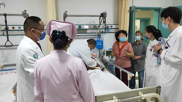 兩位孝順的女兒迎來了美滿的結局,老母親意識清醒,病情好轉,順利回家。病人康復出院給了醫(yī)護們莫大的慰藉。一面小小的錦旗,展開的卻是濃濃的醫(yī)患情深。