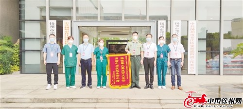 揚州市邗江區(qū)新盛街道向徐州醫(yī)療隊贈送錦旗。