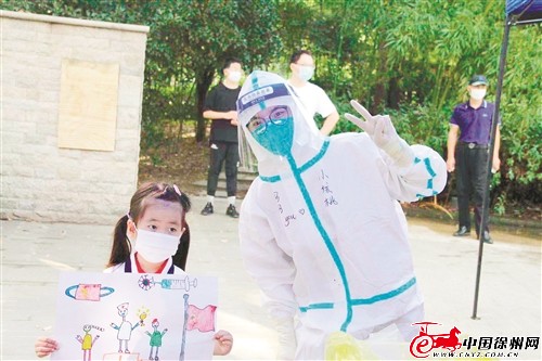 揚州小朋友以畫傳情,感謝核酸采樣的白衣天使。