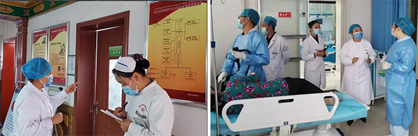 陸璐副主任護(hù)師不顧高原反應(yīng)不適,在護(hù)理部的陪同下深入門診、病房等一線指導(dǎo)防疫,提高疫情防控能力,加強(qiáng)特殊科室消殺工作。