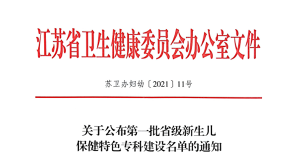 徐州市婦幼保健院首批上榜“省級(jí)新生兒保健特色專科建設(shè)單位”