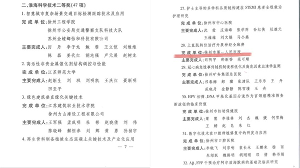 徐州市第一人民醫(yī)院榮獲第八屆淮?茖W(xué)技術(shù)獎