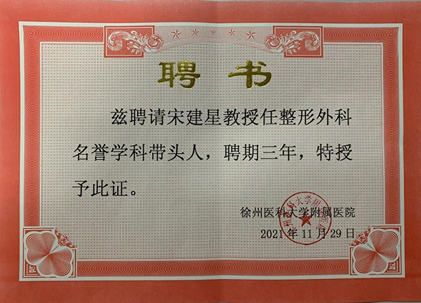 黃淮網(wǎng) 2021年,徐醫(yī)附院整形美容外科的學(xué)科建設(shè)再傳喜訊:徐州醫(yī)科大學(xué)附屬醫(yī)院聘請原海軍軍醫(yī)大學(xué)附屬長海醫(yī)院整形外科宋建星教授為整形外科名譽學(xué)科帶頭人。