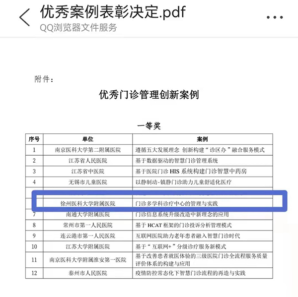 徐醫(yī)附院門診部管理創(chuàng)新案例榮獲江蘇省1個一等獎、4個優(yōu)勝獎