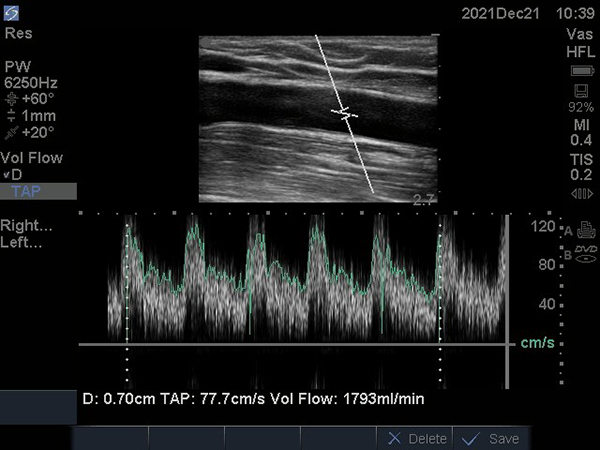 目前,隨著慢性腎臟病(CKD)患者人數(shù)的不斷增多,需要進(jìn)行腎臟替代治療的患者也逐年增加。血液透析是目前全世界范圍內(nèi)采用的最為廣泛的腎臟替代治療方式。建立一條滿足透析需求且可長(zhǎng)期使用的血管通路是血液透析患者所必需的,是血液透析患者的“生命線”。自體動(dòng)靜脈內(nèi)瘺(arteriovenous fistula, AVF)是國(guó)內(nèi)外各類指南推薦的首選永久性血管通路。但是內(nèi)瘺建立后,由于血管內(nèi)固有血流動(dòng)力學(xué)改變以及透析時(shí)內(nèi)瘺血管的反復(fù)穿刺止血,不可避免的引起局部血管內(nèi)膜增生硬化,從而出現(xiàn)管腔狹窄,最終導(dǎo)致血栓形成及內(nèi)瘺失功。目前臨床常見的治療方式為切除狹窄段血管后重建內(nèi)瘺或選擇新的血管建立AVF,但是隨著血液透析時(shí)間的延長(zhǎng),透析患者的血管資源逐漸消耗。經(jīng)皮穿刺腔內(nèi)血管成形術(shù)(percutaneous transluminal angioplasty, PTA)可以保護(hù)患者血管資源,且創(chuàng)傷相對(duì)較小。既往是在DSA下行介入治療,產(chǎn)生的費(fèi)用較高,且需推注造影劑,無(wú)法保護(hù)慢性腎衰竭患者的殘余腎功能。超聲介入在較少的費(fèi)用前提下,即可保護(hù)殘余腎功能,也能解決患者的透析血管通路狹窄。同時(shí),在患者早期診斷及隨訪方面,超聲檢查發(fā)揮著DSA所不可替代的作用。