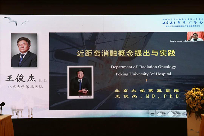 王綠化院長(zhǎng)以《放療聯(lián)合免疫治療在肺癌治療中的新機(jī)遇和新挑戰(zhàn)》為題作線上主旨演講,王俊杰教授以《腫瘤的近距離治療》為題作線上主旨演講。