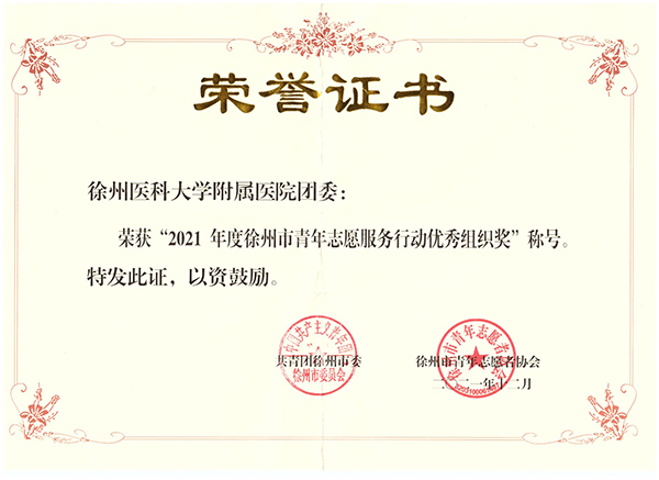 徐州市團委為徐醫(yī)附院兩個部門頒獎