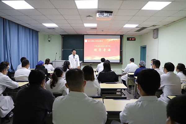 重癥醫(yī)學(xué)科趙文靜主任作為培訓(xùn)點(diǎn)老師代表,分享了自己多年的危急重癥救治經(jīng)驗(yàn),對新學(xué)員的培訓(xùn)、學(xué)習(xí)提供了新的方法和思路,并表示在今后教學(xué)中將一如既往地認(rèn)真帶教、嚴(yán)格把關(guān)。醫(yī)務(wù)處副處長王建設(shè)對培訓(xùn)管理制度及第9期分班情況進(jìn)行了詳細(xì)說明,強(qiáng)調(diào)按照院黨委新階段的高標(biāo)準(zhǔn)要求,提高標(biāo)準(zhǔn),加大力度,切實(shí)打造能力過硬隊(duì)伍,繼續(xù)狠抓落實(shí),使危急重癥救治能力提升成為我院高質(zhì)量發(fā)展的強(qiáng)勁助力。