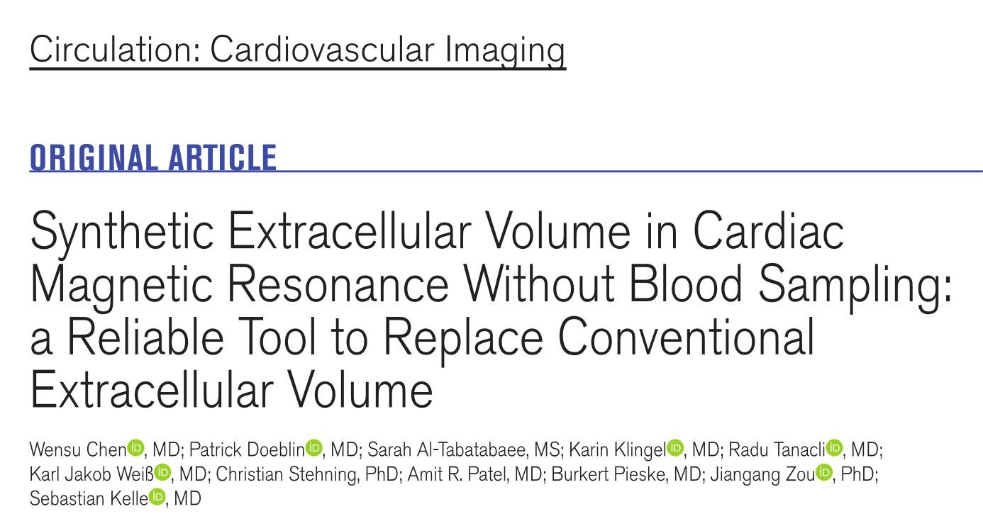 黃淮網(wǎng)(胡曉芹)近日,國際權(quán)威學(xué)術(shù)期刊Circulation: Cardiovascular Imaging(中科院1區(qū))在線報道了由徐醫(yī)附院心臟電生理團(tuán)隊陳文蘇博士、德國柏林心臟中心Kelle Sebastian教授團(tuán)隊合作完成的最新研究成果:“Synthetic Extracellular Volume in Cardiac Magnetic Resonance Without Blood Sampling: a Reliable Tool to Replace Conventional Extracellular Volume”。