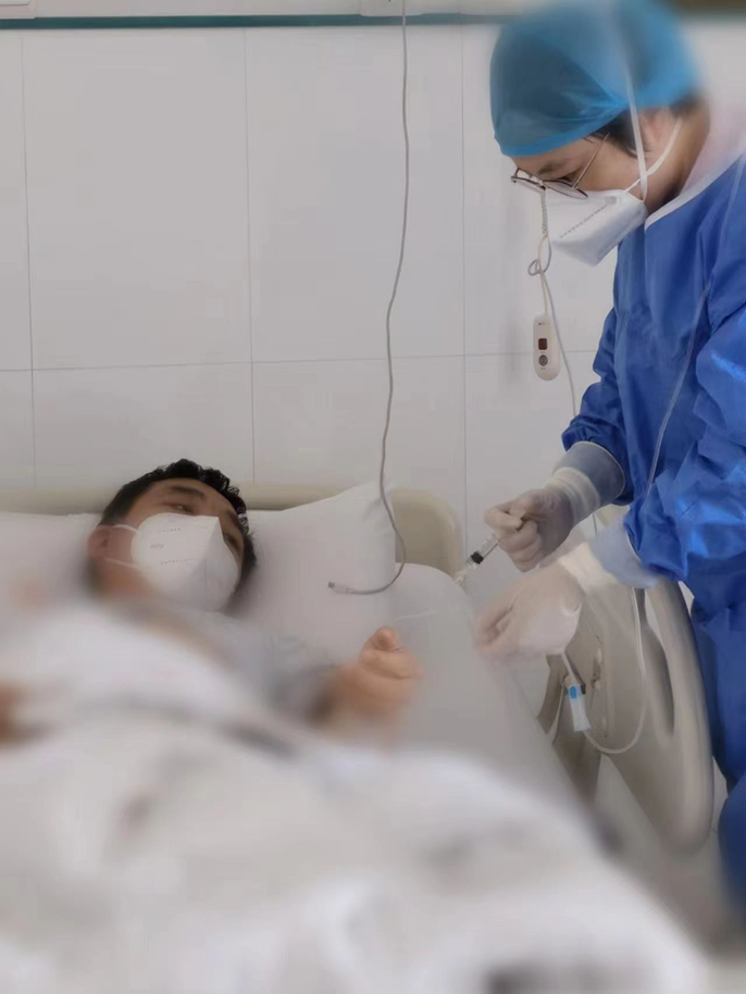 由于患者為外省患者、家屬不在身邊,無(wú)法完成手術(shù)簽字,患者唯一的朋友也具有中高風(fēng)險(xiǎn)地區(qū)旅居史、行程碼帶星號(hào),無(wú)法陪同。但為了救治患者,經(jīng)過(guò)院領(lǐng)導(dǎo)與醫(yī)務(wù)處領(lǐng)導(dǎo)商議,決定立即啟用隔離手術(shù)室,先為患者實(shí)施手術(shù),按照疫情防控要求,所有參與手術(shù)人員做好全程防護(hù),嚴(yán)格執(zhí)行防護(hù)措施。這樣一來(lái)也給手術(shù)帶來(lái)極大不便。