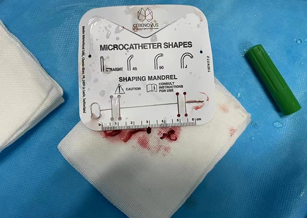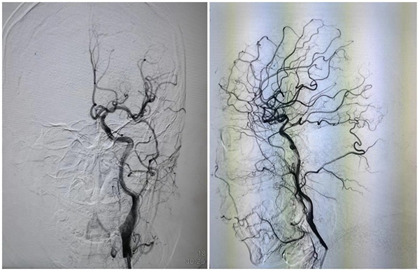“時(shí)間就是大腦”,腦梗死救治分秒必爭(zhēng)。按照防疫要求,徐醫(yī)附院緊急啟動(dòng)“綠色通道”,為其進(jìn)行核酸采樣,經(jīng)卒中救治團(tuán)隊(duì)李海亮主治醫(yī)師對(duì)患者進(jìn)行檢查評(píng)估:患者意識(shí)喪失,右側(cè)偏癱,雙眼向左側(cè)凝視,既往有心臟瓣膜病換瓣手術(shù)史,長(zhǎng)期口服華法林治療,考慮心源性栓塞可能。于是緊急啟動(dòng)腦血管病介入應(yīng)急小組,卒中病區(qū)程言博主任醫(yī)師、杜波副主任醫(yī)師火速趕到,急診上臺(tái)動(dòng)脈取栓,手術(shù)過(guò)程復(fù)雜艱辛,但是憑借豐富的經(jīng)驗(yàn)和嫻熟的技藝,一把取通,及時(shí)恢復(fù)前向血流。病人術(shù)后意識(shí)立即恢復(fù)至清醒,癱瘓側(cè)肢體能自主活動(dòng)。