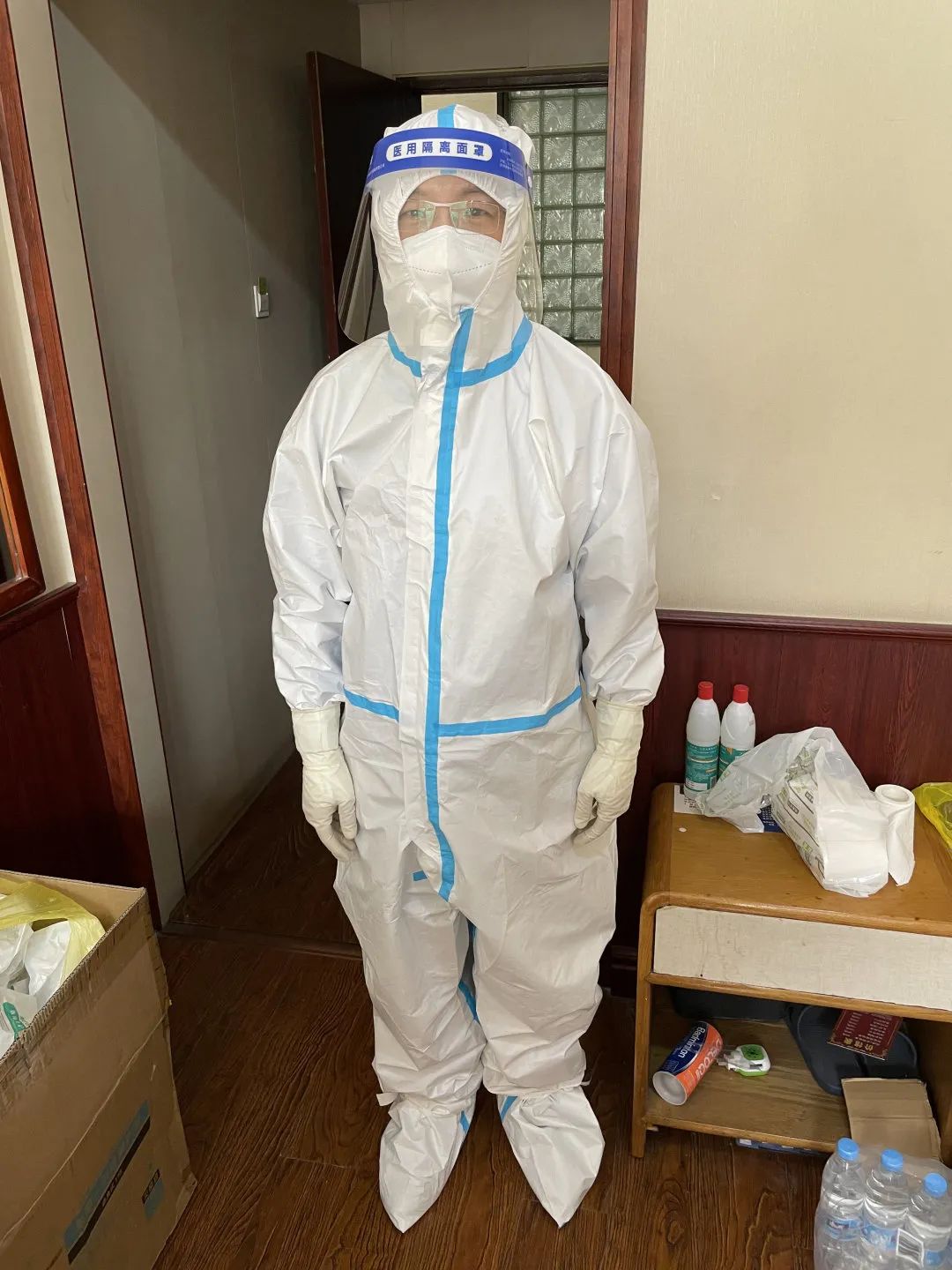 進(jìn)駐隔離點(diǎn)后,在各點(diǎn)位長的指導(dǎo)下,大家加班加點(diǎn),物資領(lǐng)取、房間消殺等工作有序進(jìn)行,迅速進(jìn)入工作狀態(tài)。隔離人員由疾控中心統(tǒng)一轉(zhuǎn)送,隨有隨轉(zhuǎn),隔離點(diǎn)醫(yī)務(wù)人員每天24小時值班,經(jīng)常不能按點(diǎn)吃飯,半夜接送隔離者也是常態(tài)。醫(yī)務(wù)人員日常還要負(fù)責(zé)醫(yī)學(xué)觀察、體溫監(jiān)測、核酸采樣、信息登記上報和突發(fā)應(yīng)急事件處置等各種工作。衣服經(jīng)常汗?jié)瘢p手捂得起了濕疹,長時間戴口罩有時感覺呼吸困難,臉上也留下深深的勒痕。平時看似簡單的工作穿著厚重的防護(hù)服卻顯得有些笨拙,但大家都無怨無悔,努力為徐州市疫情防控做出自己的貢獻(xiàn)。