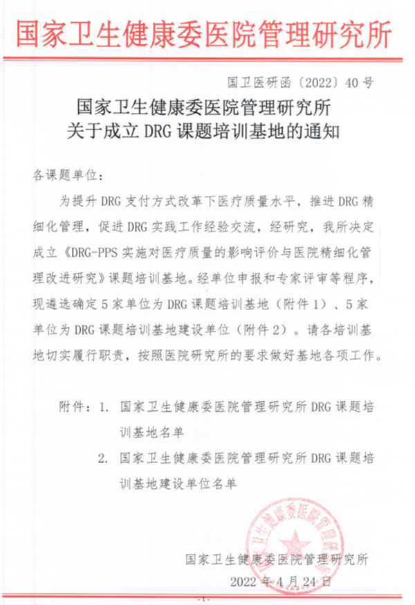 黃淮網(wǎng)(張洪成)4月24日,國(guó)家衛(wèi)生健康委醫(yī)院管理研究所公布《關(guān)于成立DRG課題培訓(xùn)基地的通知》,徐州醫(yī)科大學(xué)附屬醫(yī)院成為DRG課題培訓(xùn)基地建設(shè)單位。