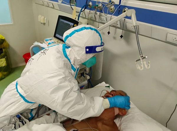 首次參加抗疫工作的神經(jīng)內(nèi)科ICU護士袁程程,在值的第一個夜班,還沒完全適應病房環(huán)境,就收治了一位特殊的病人——一個三歲的女孩。女孩當時呼之不應,這讓袁程程看了非常揪心,想起家里也有一個可愛的小女兒,作為母親,不禁遐想這個女孩的媽媽會有多么擔心。在安置好女孩后,袁程程發(fā)現(xiàn)她已漸漸蘇醒。身處陌生的環(huán)境,女孩感到非常害怕,袁程程又從護士扮演起媽媽的角色,鼓勵她。安慰她,沖奶粉。講故事……一直到她完全平靜下來。神內(nèi)ICU出身的袁程程,從未有過幼兒的看護經(jīng)驗,回憶起這段經(jīng)歷她說:“小姑娘特別懂事特別堅強,一滴眼淚都沒掉,打針時候都沒哭。自己無論如何不能讓小姑娘遭罪。”在隊員們都精心看護下,女孩已轉至普通病房。