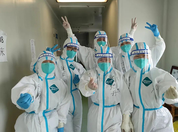 這支護理隊伍里,還有努力改善隊員生活條件的生活老師項葆老師;原定5月1日結婚,毅然將婚期拖后,投入抗疫事業(yè)的護士張玉;還有每一位悉心照料病人,關心病人情緒、飯菜溫度的病房護士;每一位嚴格執(zhí)行院感要求,被消毒水熏得睜不開眼睛的感控護士;每一位認真仔細處理醫(yī)囑,口感舌燥協(xié)調(diào)病房內(nèi)外的辦公護士……他們在自己的崗位上忠于使命,恪盡職守,煥發(fā)出動人的光彩。