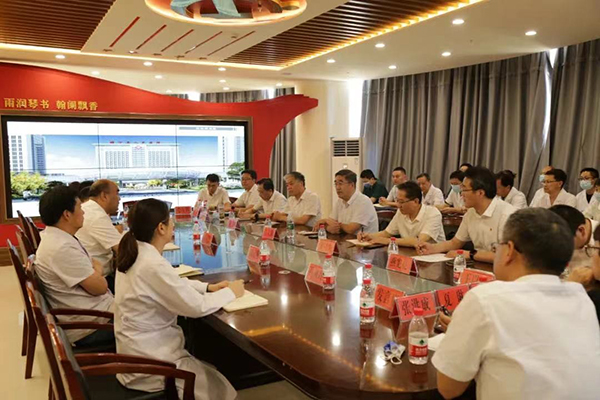 簽約儀式后,王人顥書記一行來到睢寧縣人民醫(yī)院,聯(lián)合召開了推動睢寧縣人民醫(yī)院高質(zhì)量發(fā)展座談會,與睢寧縣人民醫(yī)院領(lǐng)導(dǎo)班子、職能部門負(fù)責(zé)人、科主任和護(hù)士長代表以及我院援睢寧專家代表進(jìn)行深入座談。