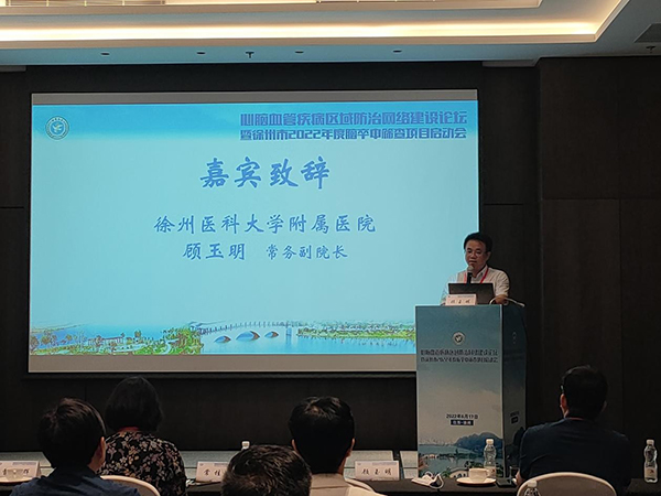 徐州醫(yī)科大學(xué)附屬醫(yī)院常務(wù)副院長(zhǎng)顧玉明致辭,對(duì)出席啟動(dòng)會(huì)的領(lǐng)導(dǎo)、專家及參與腦卒中高危人群篩查與干預(yù)項(xiàng)目的同仁表示了感謝,介紹了徐醫(yī)附院在腦卒中患者篩查與防治中所做出的努力及取得的成果,表示將一如既往重視腦卒中篩查和干預(yù)項(xiàng)目,以項(xiàng)目為依托,加快卒中中心建設(shè),更好地滿足徐州乃至淮海經(jīng)濟(jì)區(qū)百姓的醫(yī)療服務(wù)需求。