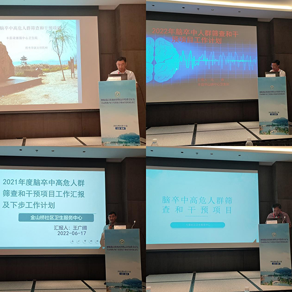 學(xué)術(shù)論壇環(huán)節(jié),徐醫(yī)附院及項(xiàng)目篩查點(diǎn)分別作了項(xiàng)目工作經(jīng)驗(yàn)交流。程言博副主任代表我院總結(jié)了2021年度項(xiàng)目工作開展情況、介紹了2022年度項(xiàng)目重點(diǎn)工作,通過院內(nèi)、院外數(shù)據(jù)的分析,肯定了項(xiàng)目所取得的成績(jī),列出了存在的不足并提出改進(jìn)建議,同時(shí)介紹了院外、院內(nèi)綜合干預(yù)工作及項(xiàng)目評(píng)價(jià)指標(biāo)。金山橋社區(qū)衛(wèi)生服務(wù)中心王廣闊主任、九里社區(qū)衛(wèi)生服務(wù)中心尹建廷主任、豐縣梁寨鎮(zhèn)中心衛(wèi)生院賈考學(xué)書記、豐縣華山鎮(zhèn)中心衛(wèi)生院劉永康科長(zhǎng)分別作了項(xiàng)目工作分享與討論。