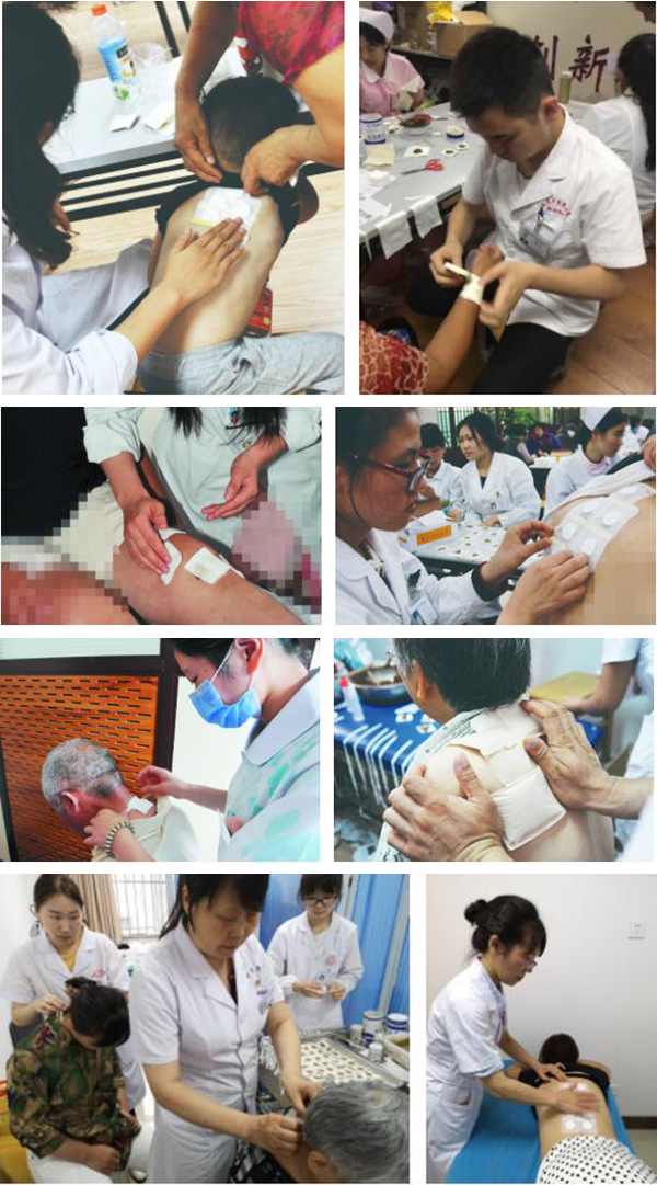 穴位貼敷是以中醫(yī)經(jīng)絡學說為理淪依據(jù),把中藥研成細末,用水、醋、酒、姜汁等調(diào)成糊狀,或?qū)⒅兴帨珓┌境筛啵驅(qū)⑺幠┥⒂诟嗨幧,再直接貼敷穴位、患處,藥物可直接刺激穴位,對穴位產(chǎn)生微面積化學性、熱性刺激,達到疏通經(jīng)絡,平衡陰陽,調(diào)節(jié)臟腑氣血之功效,具有一定防治疾病的作用。