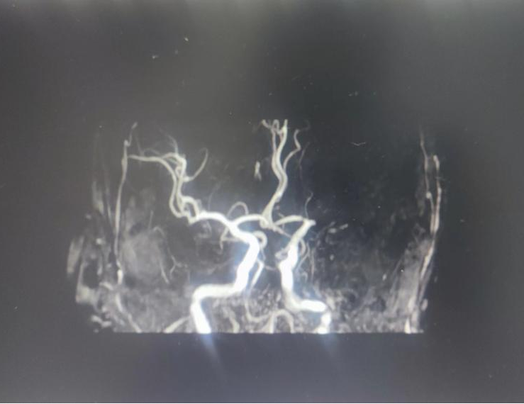 4號早上8點半,呼叫鈴又響起。家人發(fā)現(xiàn)徐大爺再次出現(xiàn)嗜睡等癥狀,情況危急,郭春暉主任判斷徐大爺?shù)难艹霈F(xiàn)了再發(fā)閉塞。頭顱MRI+MRA顯示徐大爺側(cè)腦室旁腦白質(zhì)變性,腦萎縮;顱內(nèi)動脈粥樣硬化,局部管腔狹細;左大腦中動脈閉塞,兩側(cè)胚胎型大腦后動脈。
