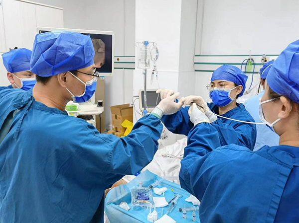 氣管狹窄屬于呼吸系統(tǒng)危及生命的急危重癥,經(jīng)支氣管鏡植入氣管支架,是呼吸介入診療技術(shù)中難度及風(fēng)險(xiǎn)較高的手術(shù)之一。其優(yōu)勢(shì)在于創(chuàng)傷小,直視下定位精準(zhǔn),且對(duì)于復(fù)雜氣道病變,可根據(jù)鏡下表現(xiàn)及時(shí)調(diào)整手術(shù)方式,快速開(kāi)放氣道,解除氣道梗阻,效果較好。呼吸與危重癥醫(yī)學(xué)科目前已經(jīng)開(kāi)展了無(wú)痛/全麻下超聲內(nèi)鏡引導(dǎo)下經(jīng)支氣管針吸活檢術(shù)(EBUS-TBNA)、支氣管超聲導(dǎo)向鞘引導(dǎo)下經(jīng)支氣管肺活檢術(shù)(EBUS-GS-TBLB)、氬等離子體凝固術(shù)(APC)、冷凍、球囊擴(kuò)張術(shù)、氬氦刀、電圈套器腫瘤切除術(shù)、支架植入和支氣管熱成型術(shù)等診療技術(shù)。今后將不斷提高醫(yī)療技術(shù)水平和服務(wù)質(zhì)量,開(kāi)拓進(jìn)取、精益求精,為淮海經(jīng)濟(jì)區(qū)人民群眾的生命健康保駕護(hù)航。