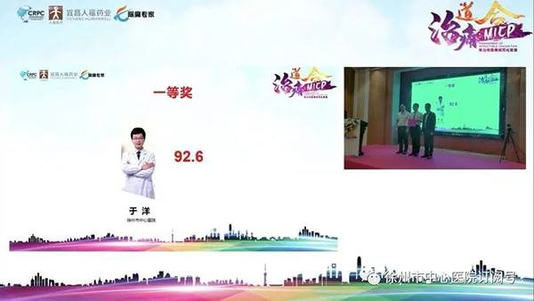大會(huì)同時(shí)進(jìn)行了“治痛道合”首屆難治性癌痛規(guī)范化診療臨床技能演講比賽——全國總決賽,徐州市中心醫(yī)院腫瘤內(nèi)科二病區(qū)副主任、副主任醫(yī)師于洋榮獲一等獎(jiǎng)(全國唯一)。