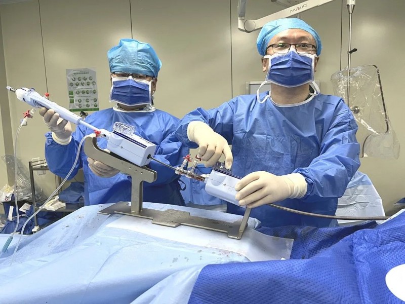 在院方的大力支持及心內(nèi)科主任王相智、心胸外科主任韓冬的協(xié)調(diào)領(lǐng)導(dǎo)下,手術(shù)由徐州市一院心臟瓣膜病團(tuán)隊(duì)副主任醫(yī)師趙躍武主持完成。在不“開刀”的情況下,患者二尖瓣返流由術(shù)前重度變?yōu)槲⒘,病情明顯改善。該手術(shù)還得到了超聲醫(yī)學(xué)科主任陳炳華、麻醉科副主任王德領(lǐng)、醫(yī)務(wù)處副處長(zhǎng)戴必照、介入導(dǎo)管室護(hù)士長(zhǎng)孫寧、超聲科副主任醫(yī)師刁曉梅、心內(nèi)科副主任醫(yī)師何海燕,技師朱子蕙、鄭紅云,護(hù)師宋偉健、張昆等多學(xué)科專家、醫(yī)務(wù)人員的參與支持。