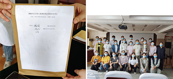本次考試由徐州市中醫(yī)院、徐州市兒童醫(yī)院、宿遷市宿城區(qū)人民醫(yī)院的兒童康復治療師共同監(jiān)考,嚴格按照省規(guī)培要求進行?荚嚻陂g學員遵守考場紀律,認真答題,考試全程錄像,考試完成后現(xiàn)場封卷并寄回省兒童規(guī)培質(zhì)控中心。最后所有人員合影留念。
