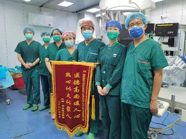 黃淮網(wǎng)(程守全)9月24日,在顧玉明常務(wù)副院長的領(lǐng)導(dǎo)以及醫(yī)務(wù)處劉筱處長、設(shè)備處樊紅彬處長等的大力支持下,徐醫(yī)附院心血管內(nèi)科徐通達(dá)教授領(lǐng)銜,王誠主任率領(lǐng)結(jié)構(gòu)性心臟病介入團隊,與麻醉科、超聲影像團隊、重癥監(jiān)護(hù)室、介入護(hù)理團隊等多學(xué)科的密切協(xié)作,使用經(jīng)導(dǎo)管二尖瓣夾及可操控導(dǎo)引導(dǎo)管系統(tǒng)MitraClip™,成功為一例患者實施了經(jīng)導(dǎo)管二尖瓣緣對緣修復(fù)手術(shù)。手術(shù)順利完成,患者術(shù)后效果顯著,9月30日順利出院。國慶假后首日,10月8日,患者家屬專程送來一面錦旗,代表全家向我院和我院心內(nèi)科團隊表示衷心的感謝。
