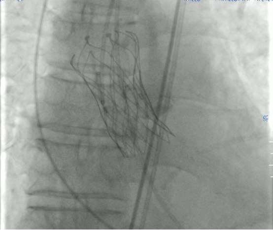 按照術(shù)前詳細(xì)制定的手術(shù)方案,麻醉科、超聲科、影像科“瓣膜團(tuán)隊(duì)”全力協(xié)作,8月15日手術(shù)如期進(jìn)行,經(jīng)股動(dòng)脈順利完成主動(dòng)脈瓣置換手術(shù),患者胸悶憋喘等情況明顯改善,至此首例TAVR圓滿成功。