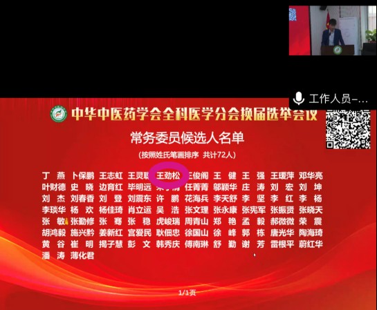 會議期間同時召開了中華中醫(yī)藥學會全科醫(yī)學分會換屆選舉工作會議,大會選舉產(chǎn)生了中華中醫(yī)藥學會全科醫(yī)分會第二屆委員會;其中主任委員1人、副主任委員7人、秘書長1人、副秘書長3人、常務委員72人、委員215人與青年委員90人。徐州市第一人民醫(yī)院男科專家王勁松主任中醫(yī)師當選為中華中醫(yī)藥學會全科醫(yī)學分會第二屆委員會常務委員。