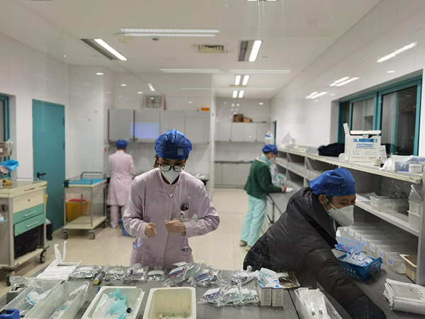 呼吸與危重癥醫(yī)學(xué)科病房作為抗疫的主戰(zhàn)場(chǎng),科室響應(yīng)醫(yī)院黨委號(hào)召,全力保障急診、發(fā)熱門診和普通門診就診的新冠肺炎患者的收治,特別是對(duì)急危重癥患者做到了應(yīng)收盡收,有效減輕了急診的診療壓力。短短的一周內(nèi),本部?jī)蓚(gè)病區(qū)全部滿床,目前本部普通病房在院患者130余人,東院病房在院新冠肺炎患者40余人。這是在醫(yī)護(hù)人員極其短缺的情況下,科室全體醫(yī)護(hù)人員咬牙堅(jiān)持、奮力拼搏,通過大家共同努力才得以保障科室的醫(yī)療工作順利進(jìn)行。在崗人員中,有的出現(xiàn)嗓子疼痛說不出話,有的關(guān)節(jié)疼痛,有的持續(xù)低燒,只要不是高熱,大家都自覺在崗在位,有的家人在住院,但他們?nèi)匀豢朔鞣N各樣的困難堅(jiān)守崗位。因?yàn)榇蠹疑钪鎸?duì)這樣史無前例的救治壓力,面對(duì)眾多患者迫切的就醫(yī)需求,不能有絲毫退縮,唯有迎難而上、守崗盡責(zé),和全院職工共同努力,才能做好本地區(qū)新冠患者的醫(yī)療救治工作。