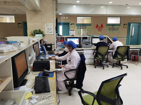 除了普通病房和呼吸ICU,近日呼吸科門診就診的新冠肺炎患者和其他呼吸道疾病患者數(shù)量激增,而且絕大部分是發(fā)熱患者?剖以卺t(yī)生嚴(yán)重減員的情況下,也保證及時(shí)出診,并且盡可能安排了高級(jí)職稱和醫(yī)療組長(zhǎng)承擔(dān)門診工作,保障了門診的診療質(zhì)量。除了承擔(dān)本科室的醫(yī)療工作外,呼吸與危重癥醫(yī)學(xué)科派出3名醫(yī)生支援了東院隔離病房和ICU的醫(yī)療救治工作。每天呼吸與危重癥醫(yī)學(xué)科的值班醫(yī)生都是忙碌地穿梭于急診搶救室和發(fā)熱門診,承擔(dān)繁重的會(huì)診和收治任務(wù)。全科室一盤棋統(tǒng)籌醫(yī)療救治和人員配置,包括肺功能室和氣管鏡室的技師也都參與了病房的護(hù)理值班工作。