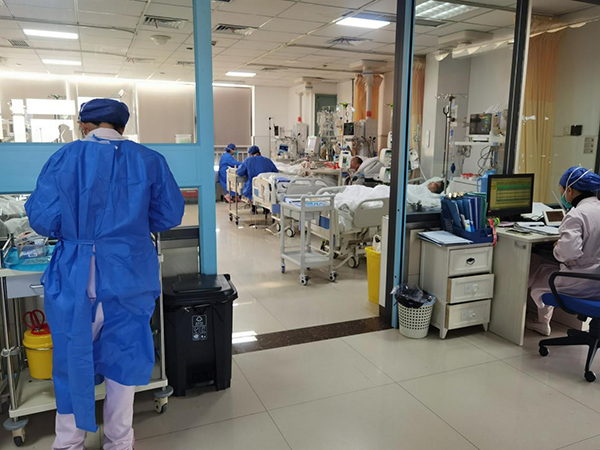 呼吸ICU作為呼吸危重患者的最后一道防線,全力保障呼吸危重癥患者的救治工作,9張床每天保持滿床狀態(tài),近1周來收治危重新冠肺炎患者20余人。呼吸ICU醫(yī)護(hù)人員在減員超過半數(shù)的情況下,克服困難、堅(jiān)守工作崗位,發(fā)揮了ICU對(duì)于危重癥患者的兜底救治作用。同時(shí),科室積極采取措施全力保障呼吸ICU正常運(yùn)轉(zhuǎn),協(xié)調(diào)普通病房醫(yī)生成立ICU人員后備組,隨時(shí)做好補(bǔ)充ICU準(zhǔn)備。