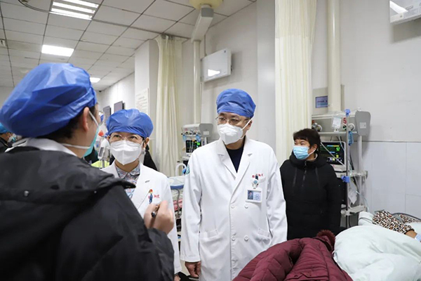 本部、東院兩個院區(qū)床位全部開放,落實應(yīng)收盡收,專家巡回指導(dǎo),保證診療同質(zhì)化。所有科室均按醫(yī)院統(tǒng)籌收治新冠病毒感染患者。醫(yī)院成立新冠病毒感染重癥救治專家組,專家巡診包干,28位專家下沉到各自包干病區(qū),分區(qū)指導(dǎo)患者收治。