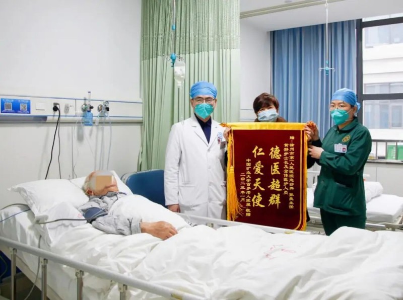 老的家人把一面繡著“德醫(yī)超群,仁愛天使”字樣的錦旗送至忙碌在工作崗位上的徐州市第一人民醫(yī)院急診人手中,為了致謝12月25日以來張良主任及其團(tuán)隊(duì)醫(yī)護(hù)對(duì)這位百歲中國(guó)礦業(yè)大學(xué)的老職工的專業(yè)救治和貼心照料。