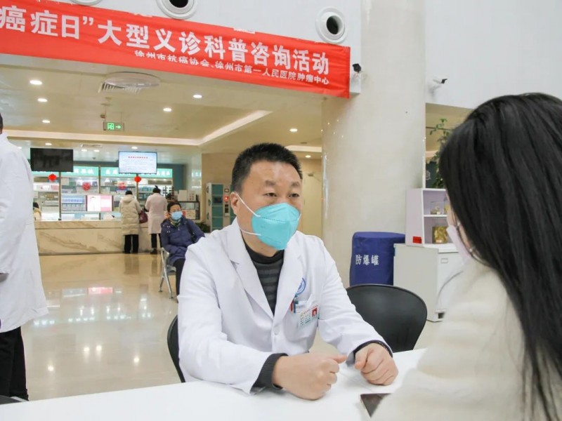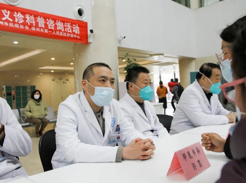 徐州市第一人民醫(yī)院3號(hào)樓門診大廳內(nèi)人頭攢動(dòng),義診咨詢臺(tái)前,來自徐州市第一人民醫(yī)院腫瘤中心、心胸外科、婦科、甲狀腺乳腺外科、呼吸與危重癥醫(yī)學(xué)科、胃腸外科、心內(nèi)科等各領(lǐng)域資深專家與前來咨詢的民眾面對(duì)著面,傾聽他們的困擾,解答他們的疑惑,用淺顯易懂的語言講授科學(xué)理念和防治知識(shí),為他們的防癌抗癌之路提供指引和參考。