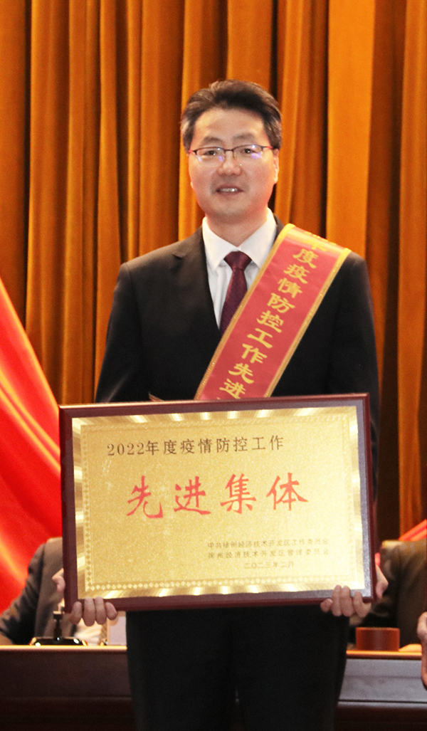會(huì)上,經(jīng)開區(qū)黨工委、管委會(huì)對(duì)全區(qū)部分企事業(yè)單位在上年度疫情防控中所做的工作進(jìn)行了表彰,對(duì)被表彰單位在全區(qū)疫情防控工作的擔(dān)當(dāng)作為和無(wú)私奉獻(xiàn)進(jìn)行了感謝。徐州醫(yī)科大學(xué)附屬醫(yī)院(東院)榮獲“2022年度疫情防控工作先進(jìn)集體”稱號(hào)。徐醫(yī)附院副院長(zhǎng)燕憲亮代表醫(yī)院上臺(tái)領(lǐng)獎(jiǎng)。