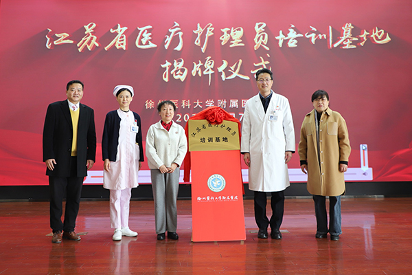 黃淮網(wǎng) 2023年2月7日,徐州醫(yī)科大學(xué)附屬醫(yī)院舉行“江蘇省醫(yī)療護(hù)理員培訓(xùn)”第一期開班儀式暨“江蘇省醫(yī)療護(hù)理員培訓(xùn)基地”揭牌儀式。江蘇省護(hù)理學(xué)會(huì)理事長霍孝蓉、徐州市護(hù)理學(xué)會(huì)理事長夏靜、徐醫(yī)附院副院長燕憲亮、金屯物業(yè)公司總經(jīng)理閆吉平等出席儀式并共同為基地揭牌。