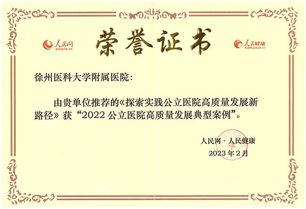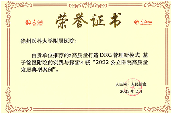 經(jīng)過組織申報(bào)、專家評(píng)議,徐州醫(yī)科大學(xué)附屬醫(yī)院申報(bào)的《探索實(shí)踐公立醫(yī)院高質(zhì)量發(fā)展新路徑》《高質(zhì)量打造DRG管理新模式——基于徐醫(yī)附院的實(shí)踐與探索》雙雙榮獲“2022公立醫(yī)院高質(zhì)量發(fā)展典型案例”。