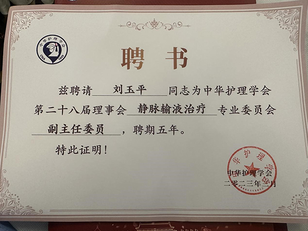 徐醫(yī)附院護(hù)理部主任劉玉平當(dāng)選中華護(hù)理學(xué)會靜脈輸液治療專業(yè)委員會副主任委員和《中華護(hù)理雜志》編委