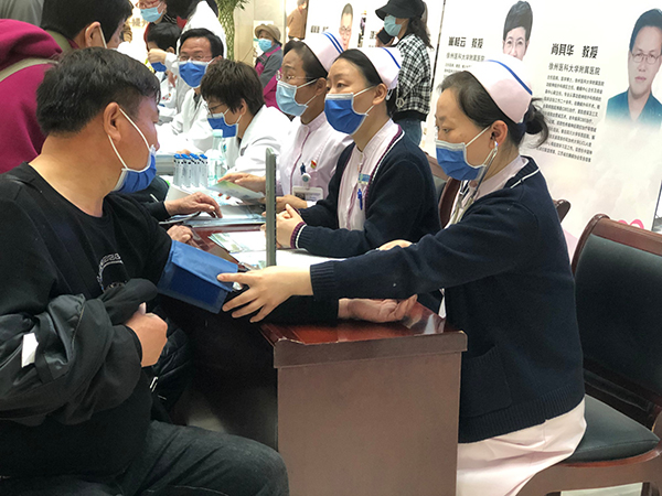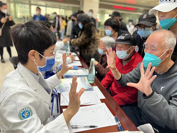 黃淮網(wǎng)(彭影)2023年4月11日是第27個(gè)“世界帕金森病日”。當(dāng)天上午,在徐州醫(yī)科大學(xué)附屬醫(yī)院二總支書記馬秋芳同志、二總支七支部書記崔桂云教授的帶領(lǐng)下,徐醫(yī)附院神經(jīng)內(nèi)科醫(yī)護(hù)團(tuán)隊(duì)聯(lián)合康復(fù)醫(yī)學(xué)科主任項(xiàng)潔教授等專家,在病房主樓服務(wù)大廳開展了“關(guān)注心理健康,全面全程管理”主題黨日暨大型義診活動(dòng)。