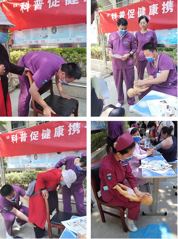 活動(dòng)現(xiàn)場(chǎng),徐醫(yī)附院血液凈化中心史靈芝護(hù)士長(zhǎng)首先針對(duì)老年人群飲食、運(yùn)動(dòng)的一些注意事項(xiàng)做了簡(jiǎn)明扼要的講解;★w護(hù)士長(zhǎng),腎內(nèi)科劉穎,徐敏護(hù)士長(zhǎng),在活動(dòng)中為大家量血壓,測(cè)血糖及血紅蛋白,并對(duì)測(cè)量異常結(jié)果的老年群眾,給予宣教,指導(dǎo)門診隨診。邵秀秀護(hù)士給老年群眾們進(jìn)行了一場(chǎng)耐心細(xì)致的常見(jiàn)緊急突發(fā)狀況的急救指導(dǎo),現(xiàn)場(chǎng)給大家進(jìn)行了心肺復(fù)蘇的操作示范。老年朋友們熱情高漲,積極配合,紛紛上手在模擬人身上操作練習(xí),提高自身的自救能力。李曉亮護(hù)士為大家演示了海姆立克急救法,分別對(duì)雙人操作、單人操作,成年人及嬰兒等不同的環(huán)境,進(jìn)行了詳細(xì)演示。老年朋友們躍躍欲試,紛紛稱贊“這個(gè)是家庭必備技能,學(xué)會(huì)了終身受益,感謝我們能來(lái)到學(xué)校給大家?guī)煼墩_的姿勢(shì)。”李方、李穎、王政靈雪護(hù)士,為大家發(fā)放健康宣傳傳冊(cè),宣傳腎臟病的防治知識(shí)和自我管理的重要性,讓老年朋友們了解腎臟病,重視腎臟健康,學(xué)會(huì)自我防護(hù)。