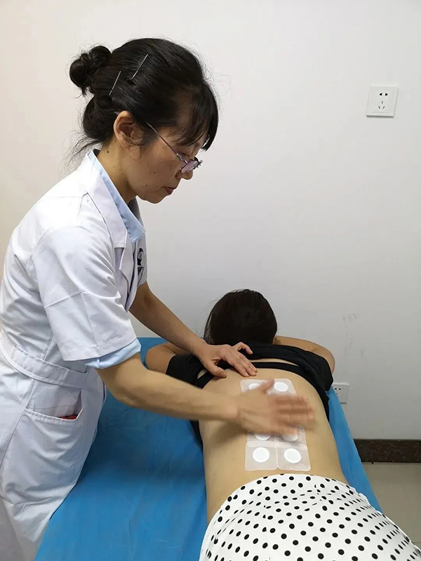 在人體背部督脈經及膀胱經涂上姜汁后,撒上督灸粉,蓋上桑皮紙,然后再在桑皮紙上鋪生姜泥如梯狀,最后在姜泥上面放置三角錐形艾柱,然后點燃三點,連續(xù)灸治三次后把姜泥和艾灰去除,然后用濕熱毛巾把治療部位擦干凈。出現(xiàn)水泡則為毒素析出,將水泡挑破,等到水泡結痂即可治療。夏季人體陽氣充盛,氣血流通旺盛,藥物最容易吸收,而夏季三伏期間是一年中陽氣最旺盛的時候,在三伏天進行貼敷及艾灸治療,最易恢復扶助人體的陽氣,加強衛(wèi)外功能,提高機體免疫力。