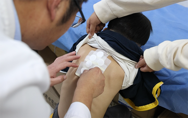 家住賈汪的寶媽一大早就帶著孩子來排隊。“我們這是第二年了,孩子一直身體弱,稍微不注意就感冒發(fā)燒的,自從去年貼過一次之后,身體結(jié)實多了。”
