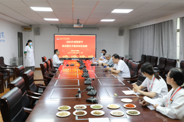 中醫(yī)藥文化是中華優(yōu)秀傳統(tǒng)文化的精髓,它深深扎根于中國古代哲學(xué)思想,充分體現(xiàn)了中華文化的價(jià)值內(nèi)核。為強(qiáng)化知識(shí)儲(chǔ)備,提高自身技能,徐州市中醫(yī)院醫(yī)務(wù)處聯(lián)合藥學(xué)部,邀請(qǐng)省名老中醫(yī)代表組成評(píng)委團(tuán)。于2023年8月11日,在醫(yī)技樓六樓會(huì)議室開展了“提高自身技能,弘揚(yáng)中醫(yī)文化”--中醫(yī)藥知識(shí)競賽,來自全院各科室的11支隊(duì)伍參加了競賽。