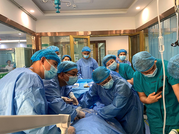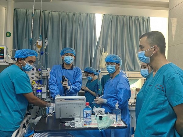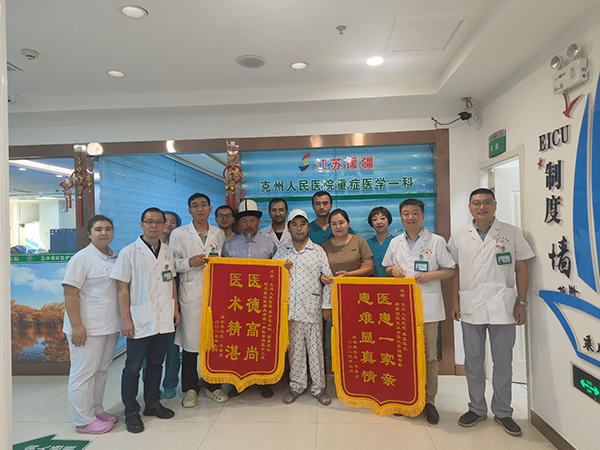 然而,ECMO的成功上機,只是與死神戰(zhàn)斗路上前進的一小步;颊叱掷m(xù)無尿,周京江帶領團隊進行ECMO支持下連續(xù)性腎臟替代治療,改善心腎功能。凝血功能的異常、內分泌系統(tǒng)的紊亂、嚴重肺部的感染,哪一項出現(xiàn)問題都將導致患者生命無法挽回。在季晶院長(援疆)的主持下,醫(yī)院組成MDT團隊,重癥醫(yī)學科、心內科、呼吸科、麻醉科、心胸外科、腎內科、內分泌科等多學科專家為患者制定合理、優(yōu)化治療方案。周京江帶領科室醫(yī)護不斷的調整治療方案,糾正每一個指標的異常,患者痰多、肺部感染重且因使用抗凝藥,出血風險高,他通過熟練的纖維支氣管鏡操作為患者清理肺部痰液,患者未出現(xiàn)任何操作后出血及其他并發(fā)癥。經歷5天5夜的治療,患者于8月18日ECMO順利撤機,8月20日拔除了氣管插管,經過近一個月后續(xù)治療,患者所有器官功能均恢復正常,未遺留任何后遺癥,并已康復出院,并為徐醫(yī)附院援疆專家送上錦旗。