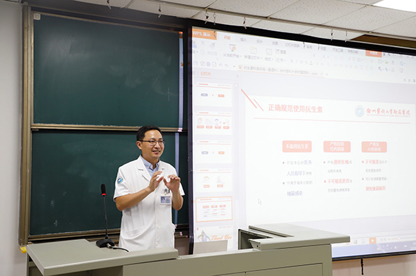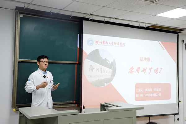 在科普講座中,徐醫(yī)附院藥學(xué)部姜道利副主任藥師主講了題為“抗生素,您用對了嗎?”的科普講座,從抗生素的發(fā)現(xiàn)和作用機(jī)理引出了日常生活中抗生素使用的誤區(qū),強(qiáng)調(diào)抗生素與消炎藥并不等同,濫用抗生素可能導(dǎo)致微生物產(chǎn)生耐藥性等不良后果,與學(xué)生們的互動使得科普內(nèi)容生動有趣。