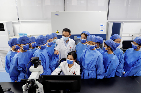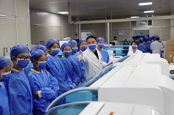 最后,工作人員引導(dǎo)廣大師生走進(jìn)醫(yī)學(xué)檢驗(yàn)科實(shí)驗(yàn)室,通過現(xiàn)場檢驗(yàn)醫(yī)師的專業(yè)講解與演示,讓師生近距離接觸了先進(jìn)的檢測儀器,詳細(xì)了解了人體標(biāo)本的檢驗(yàn)流程、顯微鏡下微生物多姿多彩的形態(tài)、全自動標(biāo)本處理分析系統(tǒng)、人工智能技術(shù)與先進(jìn)設(shè)備聯(lián)合在疾病診斷中的應(yīng)用,以及細(xì)菌耐藥性的實(shí)驗(yàn)室檢測等內(nèi)容。